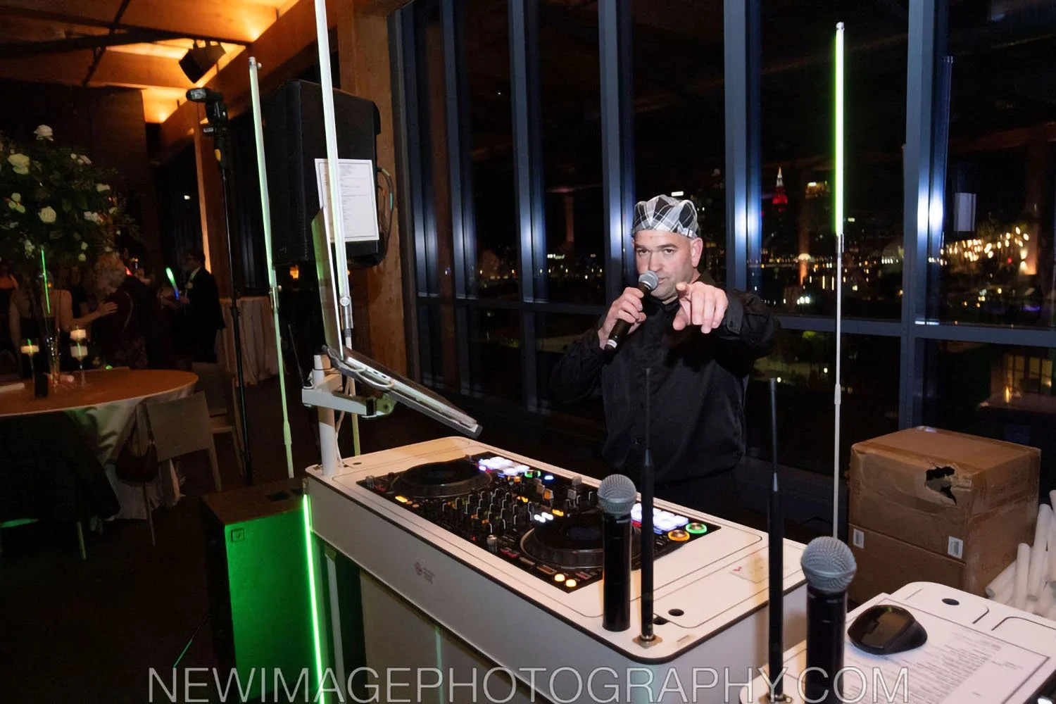 From rooftop ceremony sound to a reception with two very different DJ sets, this night was a seamless musical journey and celebration of love.