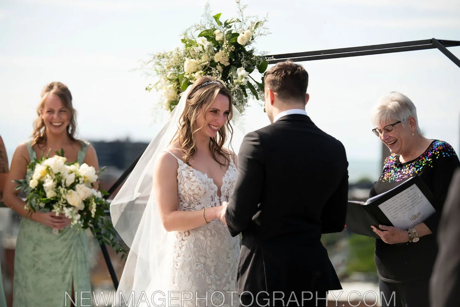 The ceremony took place on the rooftop at Truss. While easy to tackle, it’s important to know that in this environment, you may encounter distractions such as road noise from the streets below or, in this case, a rooftop pool party on the adjacent building!
