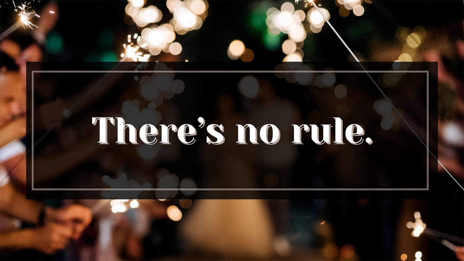 “People sometimes pick something fun for their bridal party and then go with something kind of lame for themselves,” he says. “They think it has to be slow and formal, but it really doesn’t.”